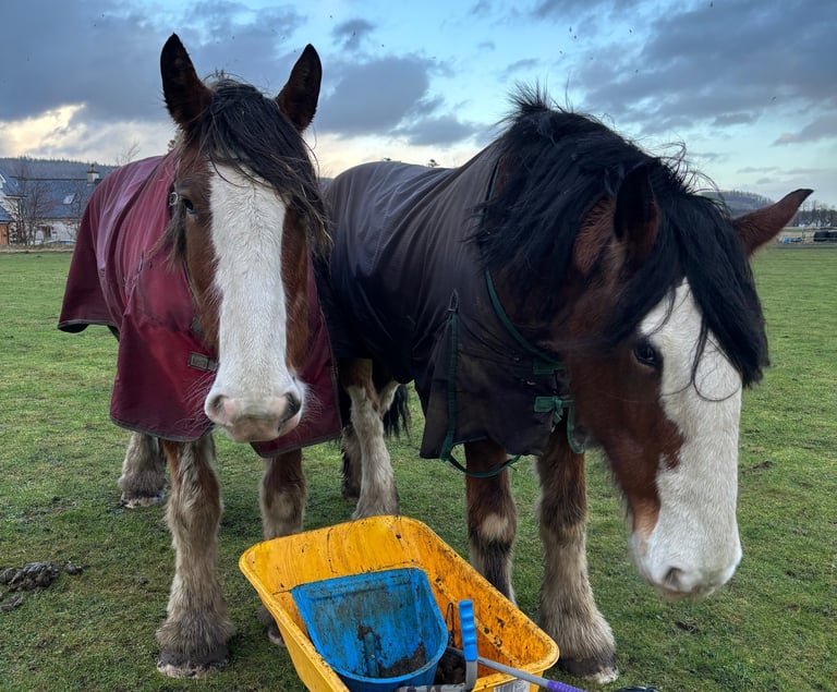 Providing services to local livery yards - mucking out, poo picking, handling and groom horses of all shapes and sizes.